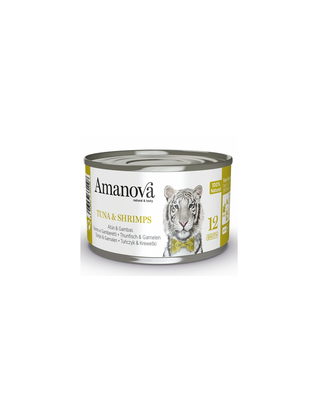 Amanova Cat Tuna & Shrimps - tuńczyk i krewetki w bulionie to wysokiej jakości naturalna mokra karma uzupełniająca dla kota, stworzona na bazie 60% świeżego tuńczyka, z dodatkiem krewetek i wody. Idealnie sprawdzi się jako zdrowe uzupełnienie codziennej diety Twojego kota – bez zbóż, sztucznych dodatków, barwników i konserwantów.
