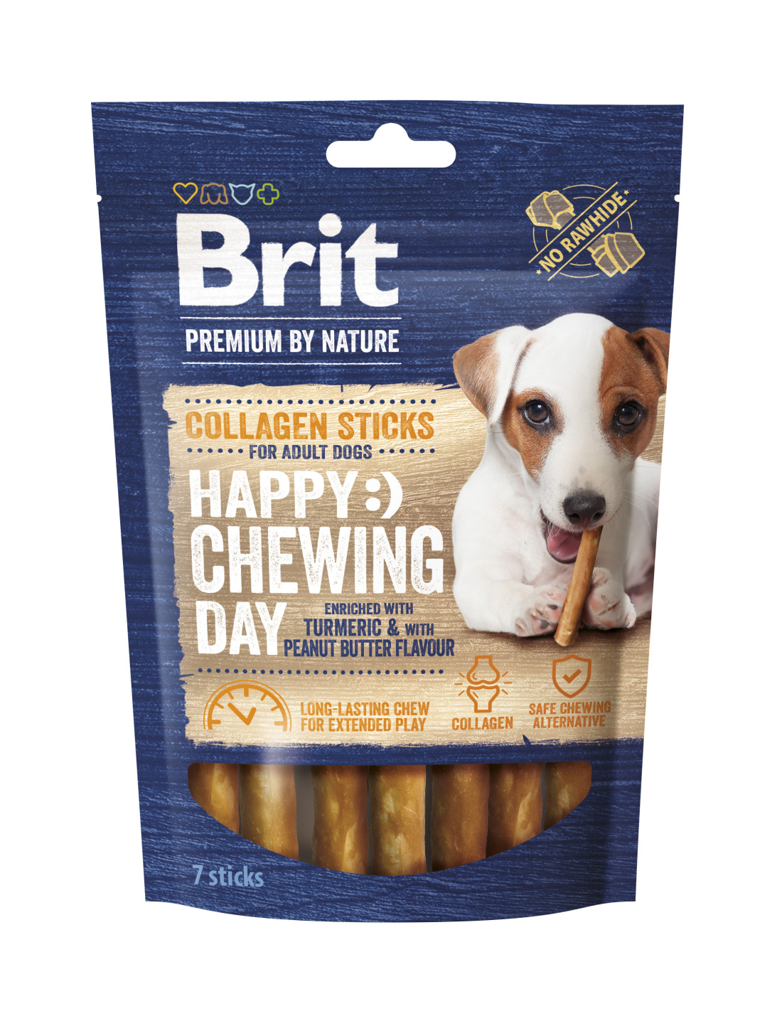 Brit Premium by Nature Collagen Sticks enriched with peanut butter and turmeric.