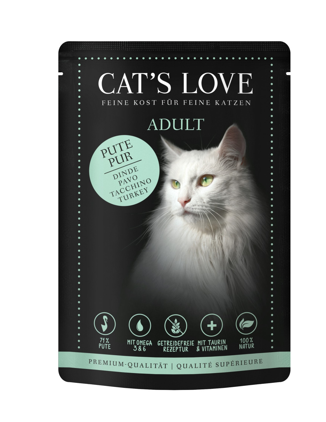 Receptura bez zbóż - wszystkie produkty Cat’s Love nie zawierają zbóż i są lekkostrawne - są więc idealne także dla wrażliwych kocich żołądków.