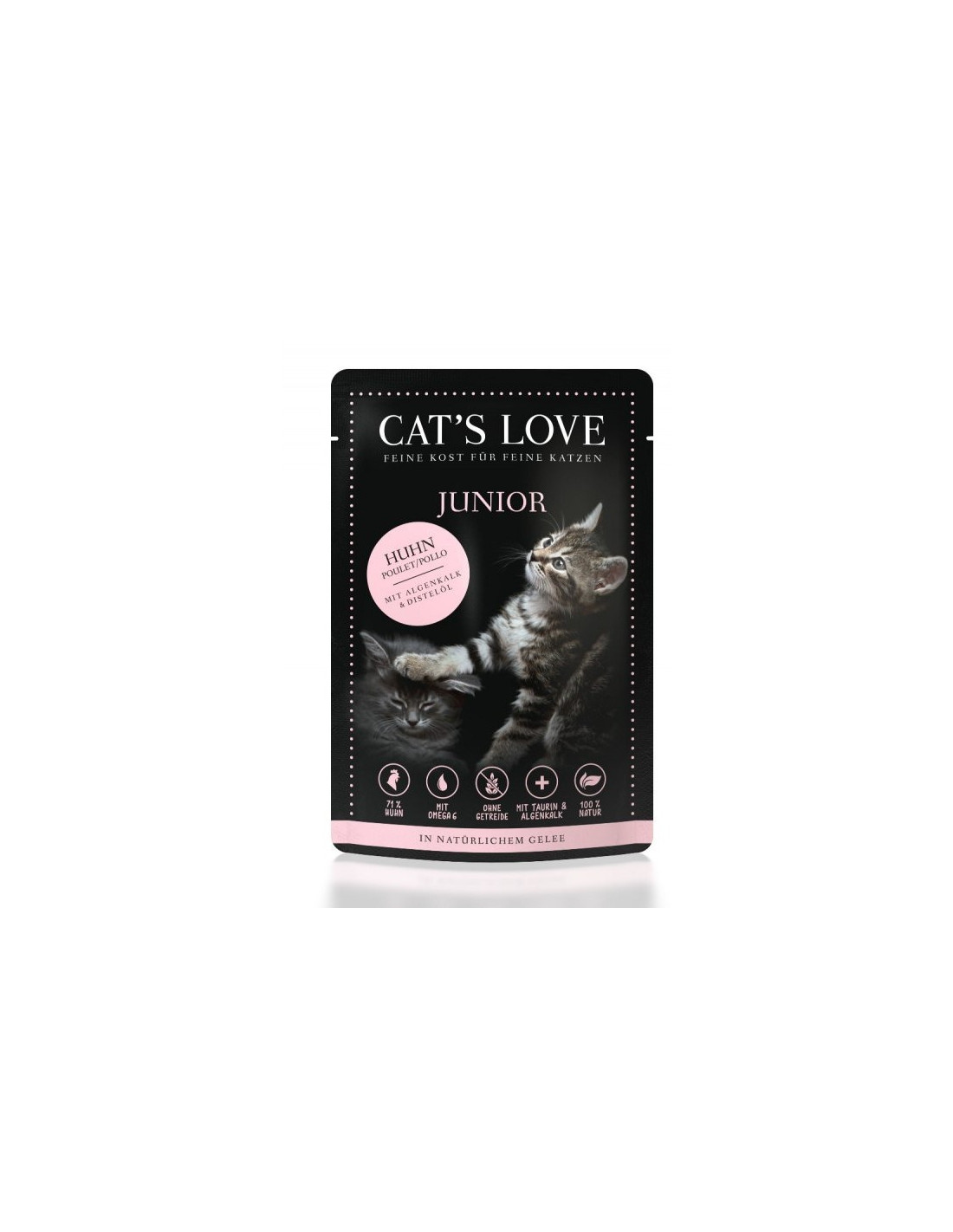 - Wysoka zawartość mięsa - Cat's Love oferuje Twojemu kotu dokładnie to, czego potrzebuje z natury: niezbędne do życia białko w najbardziej naturalnej formie z mięsa.