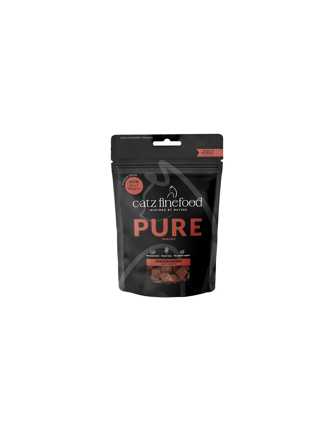 Catz Finefood Purrrrly to czyste, liofilizowane przysmaki dla kotów. Składają się w 100% z serc wołowych - całkowicie bez dodatków. Dlatego smaczki Catz finefood Purrrrly są szczególnie odpowiednie dla kotów z alergiami pokarmowymi i specjalnymi potrzebami żywieniowymi. Nawet wybredne koty uwielbiają nasze przekąski, ponieważ ich specjalny proces produkcji sprawia, że Catz finefood Purrrrly jest wyjątkowo smaczne!