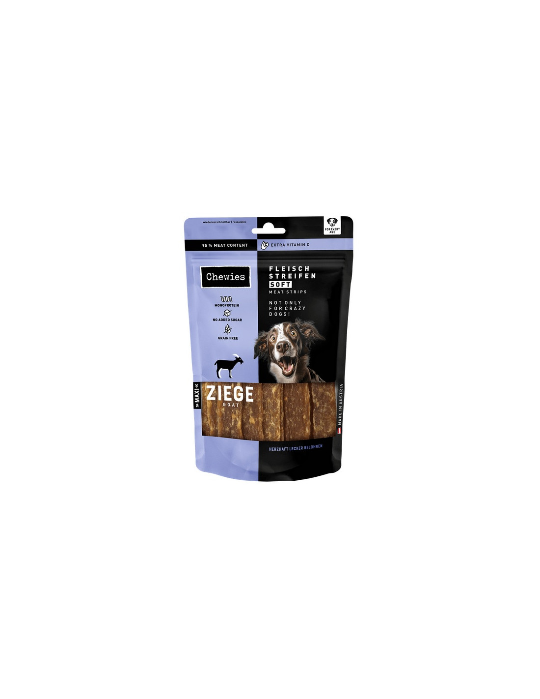 Dzięki Chewies Meat Strips Soft Twój pies będzie mógł cieszyć się ulubioną przekąską. 95% delikatnie suszonego mięsa zapewnia intensywny smak – idealny do codziennych przyjemności lub jako pożądana nagroda.