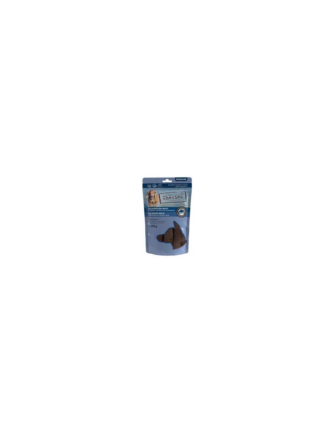 Chewies Maxi Meat/Fish Strips są tworzone z mielonego i delikatnie suszonego na powietrzu mięsa z dodatkiem witaminy C. Dzięki specjalnej produkcji wysokiej jakości składniki odżywcze mięsa są prawie całkowicie zachowane. Paski mięsne/rybne do żucia to smaczny i zdrowy przysmak między posiłkami. Są wyprodukowane w Niemczech. Paski Chewies Maxi Meat/Fish Strips mają przybliżoną długość 10 cm i od 2 do 3 cm szerokości. Można je także łatwo podzielić.