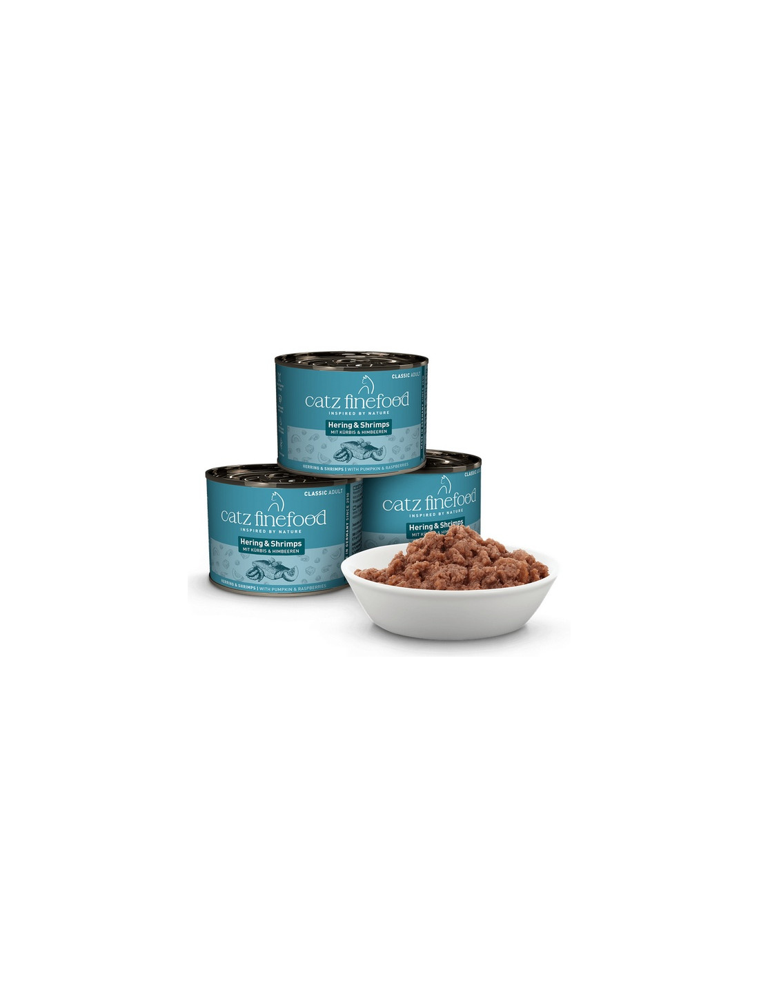 Specjał dla kotów – wartościowa karma dla naszych pupili. Catz finefood N°13 zawiera dużo delikatnego śledzia, krewetek oraz zdrowe dodatki, jak dynia i aloes. Bez konserwantów, barwników i wzmacniaczy smaku. Nie zawiera GMO. Mmmmiau!