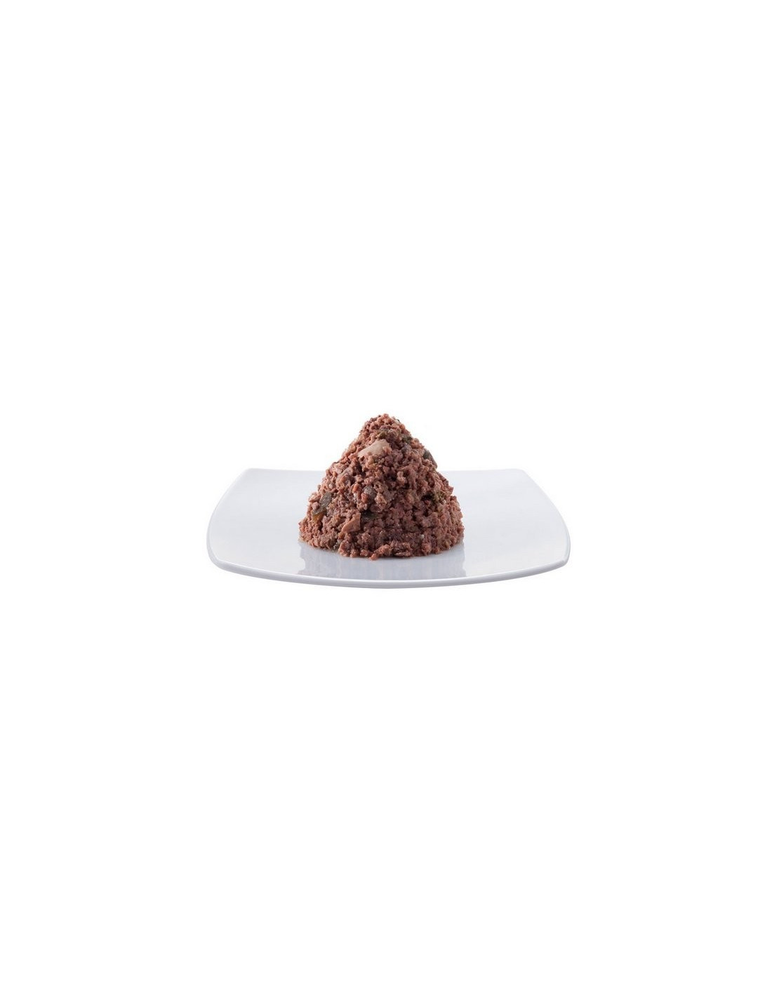 Skład: Jagnięcina 65% (mięśnie, serce, wątroba, płuca i żwacz), woda pitna 25,7%, cukinia 4%, borówka brusznica 3%, szpinak 1%, składniki mineralne 1%, olej z pestek winogron 0,2%, szałwia 0,1%.