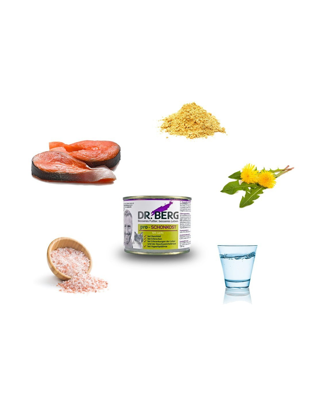 Karma weterynaryjna dla kotów z dolegliwościami trzustki i wątroby oraz przy problemach żołądkowo-jelitowych. Działa przeciwbiegunkowo, wspiera trawienie i wrażliwy żołądek, zalecana przy chorobach wątroby i trzustki. Nadaje się również dla zdrowych kotów z nadwrażliwością na pokarmy. Obniżona zawartość tłuszczu i białka, bogata w składniki mineralne. Dodatek leczniczej glinki usuwa nadmiar kwasów żołądkowych i szkodliwe produkty przemiany materii. Mniszek lekarski pobudza apetyt i oczyszcza przewód pokarmowy.