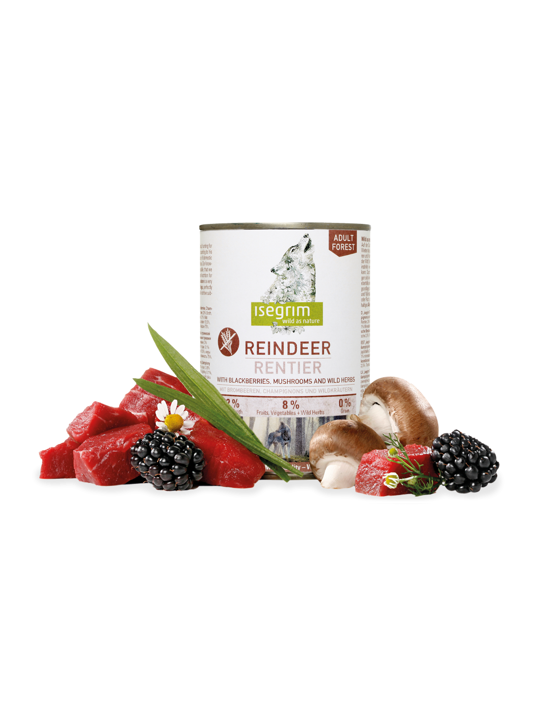 Isegrim Reindeer to wyśmienita karma z mięsem renifera, jeżynami, pieczarkami i mieszanką dzikich ziół.