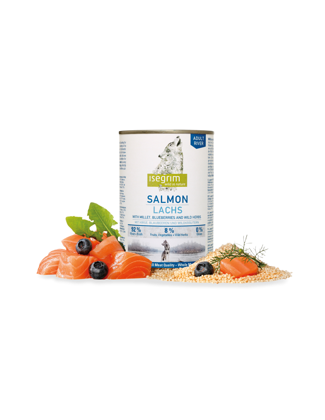 Isegrim Salmon to wyśmienita karma z łososia, prosem, jagodami i mieszanką dzikich ziół.