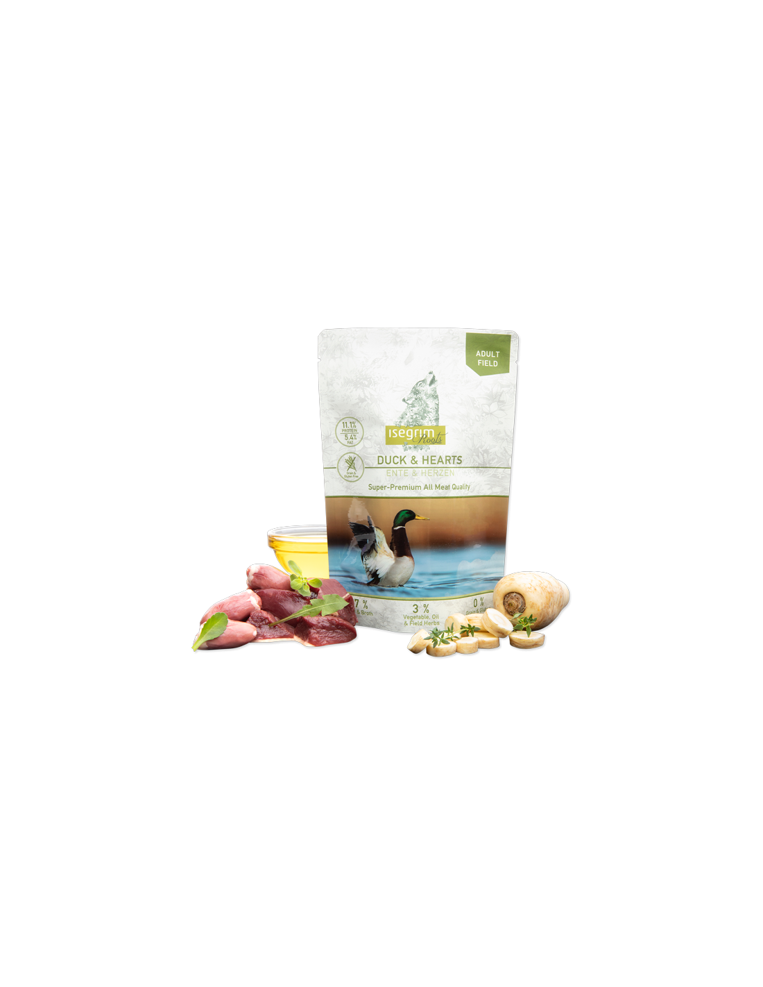 KACZKA + SERCA Z MIESZANKĄ WARZYW, OLEJEM LNIANYM I ZIOŁAMI POLNYMI
