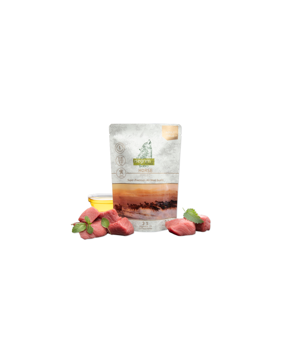 Isegrim Roots Horse to wyśmienita karma monobiałkowa z koniną i mieszanką warzyw, olejem lnianym i ziołami polnymi.