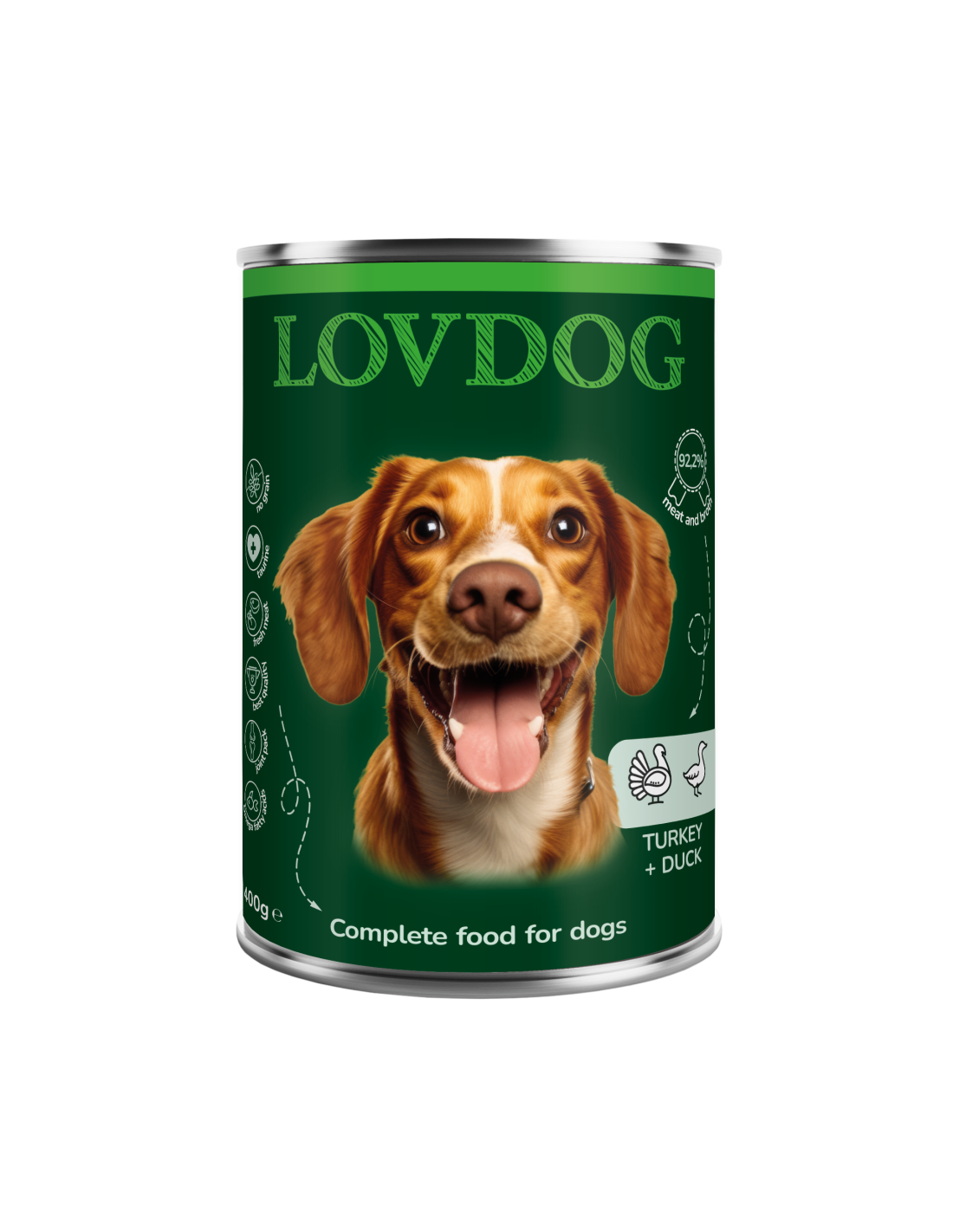 LOVDOG Turkey & Duck - Mokra karma pełnoporcjowa dla psa - Indyk i kaczka 400g