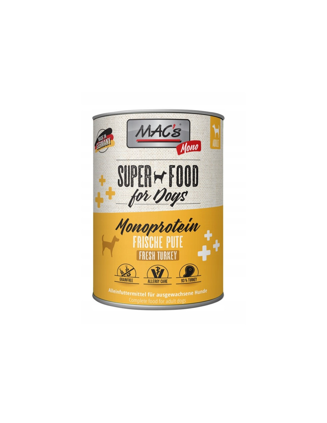 Mac's Dog Mono składa się wyłącznie z jednego źródła białka zwierzęcego, dlatego jest szczególnie odpowiednia dla psów z wrażliwym przewodem pokarmowym oraz z alergiami. Specjalna receptura jest wolna od zbóż oraz wysoce smakowita.