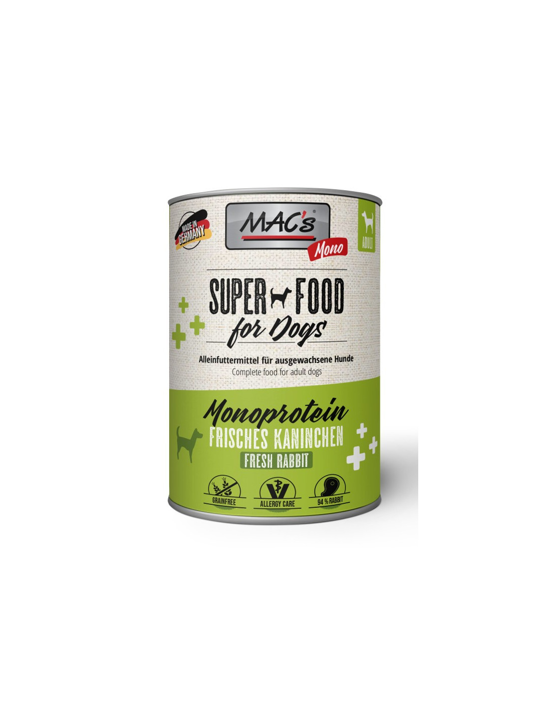 Mac's Dog Mono składa się wyłącznie z jednego źródła białka zwierzęcego, dlatego jest szczególnie odpowiednia dla psów z wrażliwym przewodem pokarmowym oraz z alergiami. Specjalna receptura jest wolna od zbóż oraz wysoce smakowita.