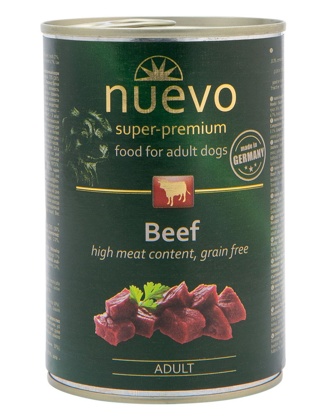 Karma nuevo Wołowina charakteryzuje się wysoką zawartością mięsa (72%) i cennego białka. Karma ta jest idealnie zbilansowanym pokarmem dla psów oferującym odpowiednią zawartość składników odżywczych oraz niezbędnych witamin i minerałów. Karma nuevo Wołowina stanowi doskonałe źródło energii, jest bardzo dobrze trawiona i wyjątkowo smaczna.