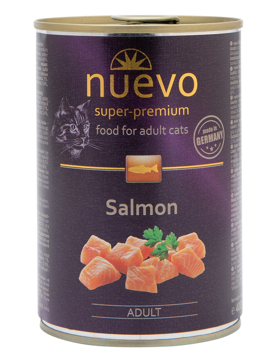 Bogaty w białko, apetyczny łosoś ze wszystkimi ważnymi minerałami stanowi idealny pokarm dla Twojego kota, nawet najbardziej wybrednego. Łosoś jest doskonałym naturalnym źródłem kwasów tłuszczowych omega-3 i omega-6, dzięki czemu bardzo korzystnie wpływa na pokrywę włosową. Karma nuevo łosoś nie zawiera zbóż i idealnie nadaje się dla kotów, które ich nie tolerują.
