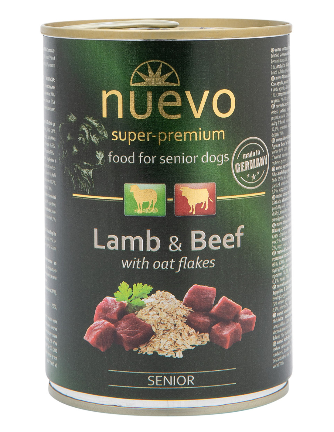 Karma dla psów starszych i tych z wrażliwym układem pokarmowym. Karma nuevo SENIOR dedykowana jest przede wszystkim dla psów starszych dostarczając im odpowiednią ilość białka, tłuszczów, węglowodanów, minerałów oraz witamin. Najwyższej jakości jagnięcina w połączeniu z wołowiną i płatkami owsianymi jest również polecana dla wszystkich psów dorosłych z wrażliwym układem trawiennym.
