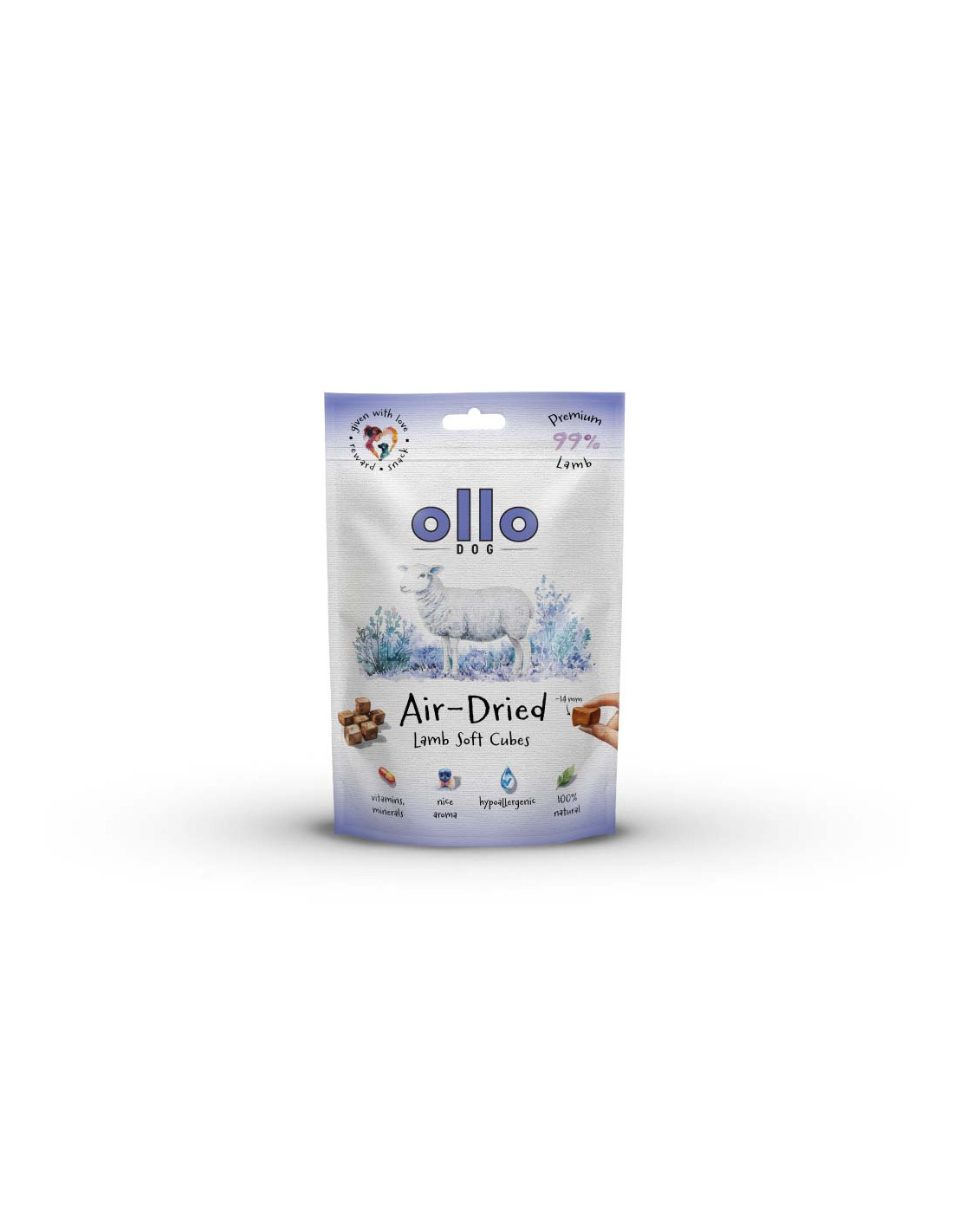 Przysmaki dla psa Ollo Air-Dried Lamb Soft Cubes to naturalne, hipoalergiczne, monobiałkowe smaczki z jagnięciny. Są delikatnie suszone powietrzem. W kształcie kostek o wymiarach ok 14 mm. W 100% naturalny produkt, stworzony z myślą o psach wszystkich ras i w każdym wieku. Są miękkie i monobiałkowe, co jest niezwykle istotne dla psów z alergiami pokarmowymi oraz tych z wrażliwym żołądkiem.