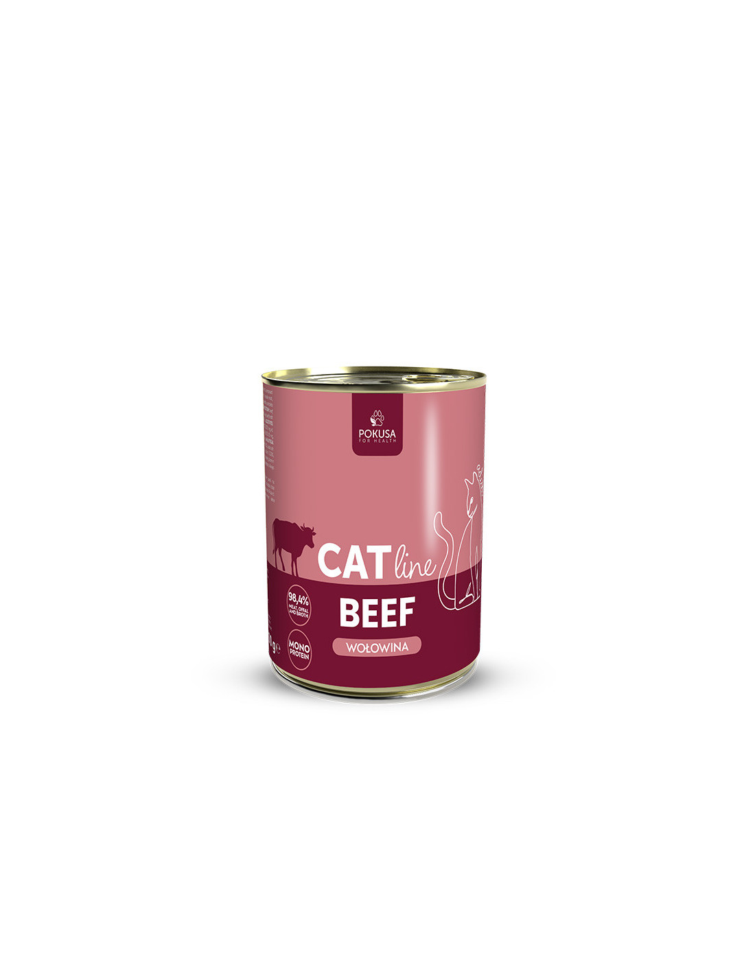 To pełnoporcjowa mokra karma stworzona z myślą o codziennym żywieniu dorosłych kotów. Naturalna, smakowita i łatwostrawna formuła z wołowiną dostarcza niezbędnych składników odżywczych i zachwyca intensywnym, mięsnym smakiem. Idealna dla kotów o wyrafinowanym podniebieniu oraz tych, które wymagają diety monoproteinowej i wysokiej jakości żywienia.