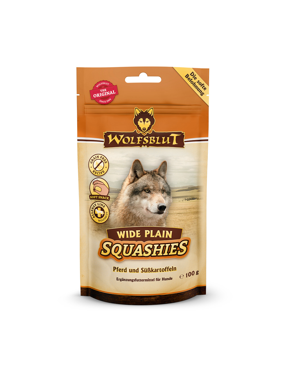 Wolfsblut Squashies - miękka przekąska dla psa w praktycznej, zamykanej torebce.