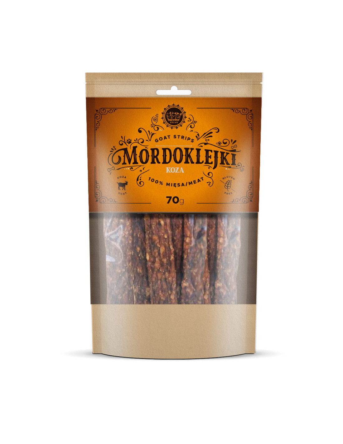 TRZYPSY DELUXE Mordoklejki to w pełni naturalne gryzaki dla psów, wykonane ze 100% mięsa w formie podłużnych pasków. Nie zawierają konserwantów ani barwników. Przysmak ten jest smaczny i pożywny, stanowi doskonałe uzupełnienie codziennej diety naszego pupila. Idealnie sprawdzą się jako nagroda.
